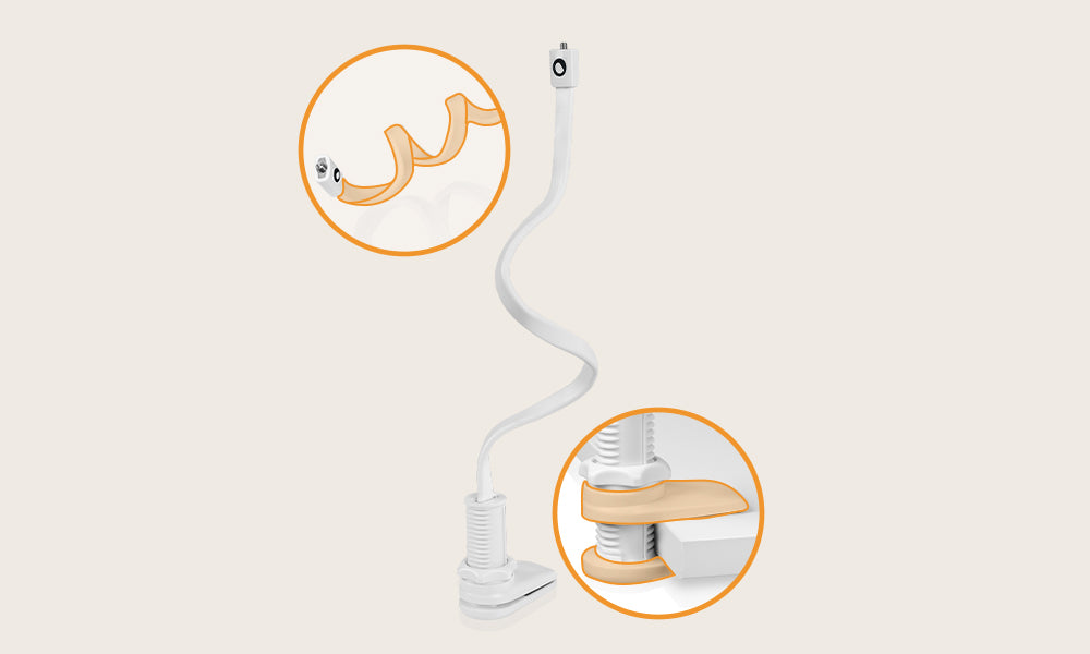 Falë opsioneve të shumta të montimit, FlexiGrip lejon të vendosni kamerën në këndin më të përshtatshëm për të vëzhguar fëmijën. Vetë shiriti ka gjatësi rreth 50 cm, që mundëson vendosjen e kamerës më lart dhe zgjerimin e fushës së regjistrimit.